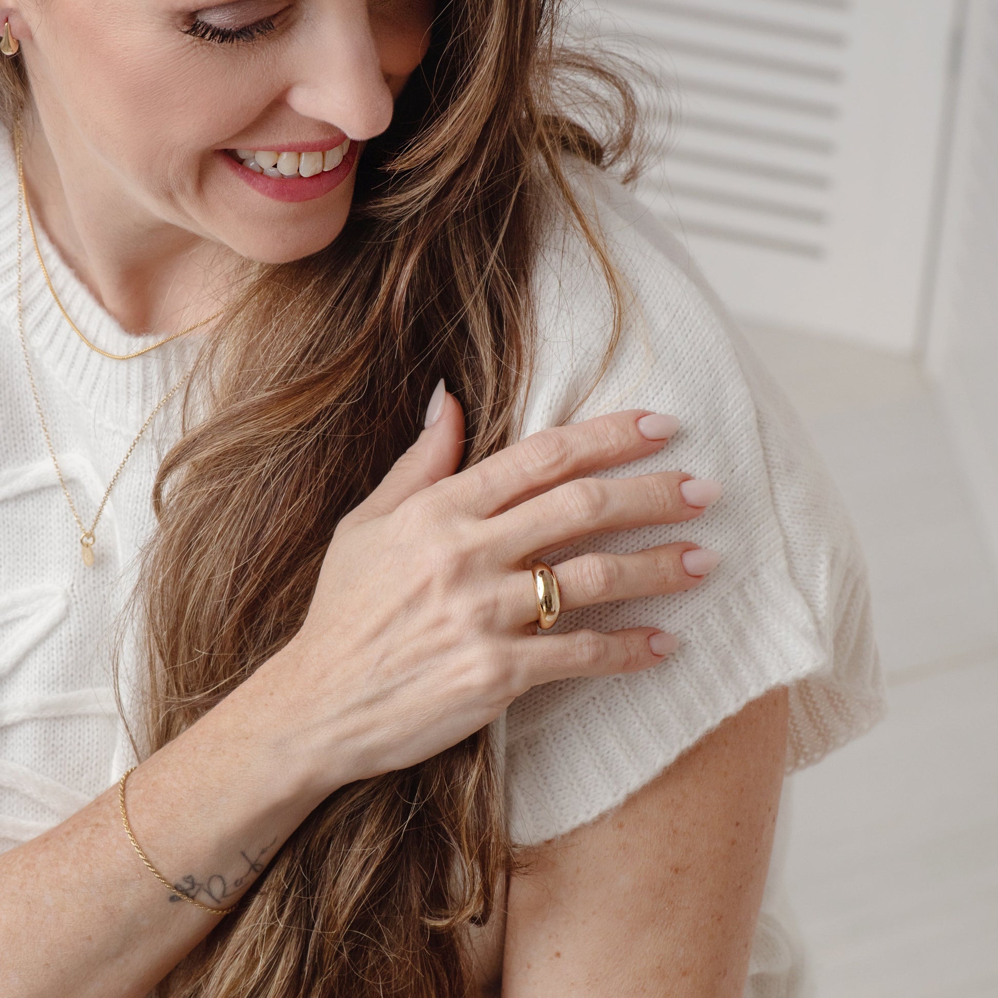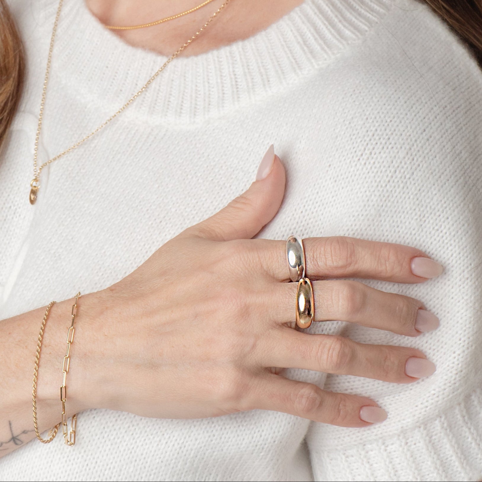 O Bold chegou pra quem gosta de presença. Ele tem volume, tem forma, tem força — e ao mesmo tempo, mantém o toque leve e atemporal. Uma peça que transforma até o look mais simples e combina perfeitamente com outros anéis mais delicados. Porque ser delicada não significa passar despercebida.