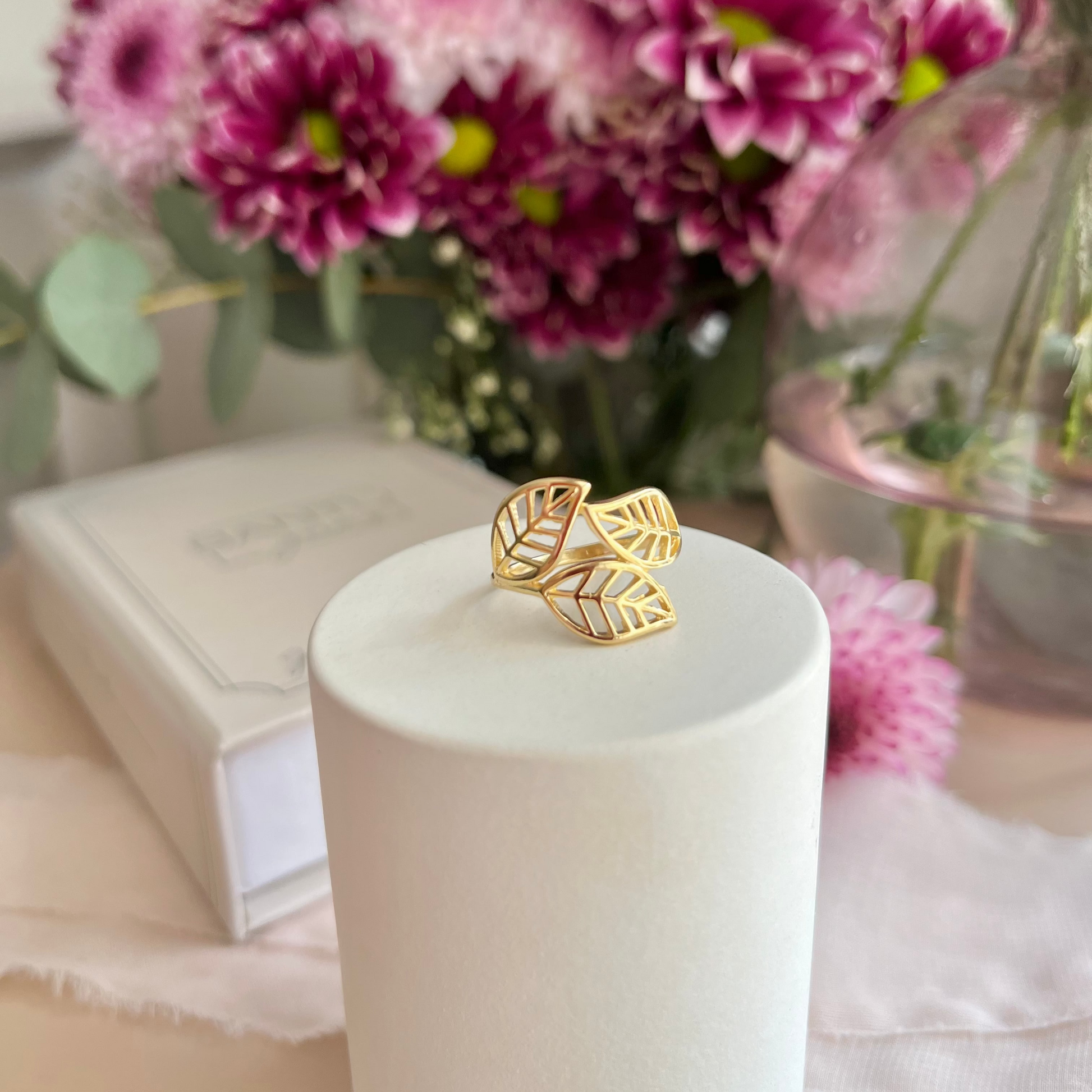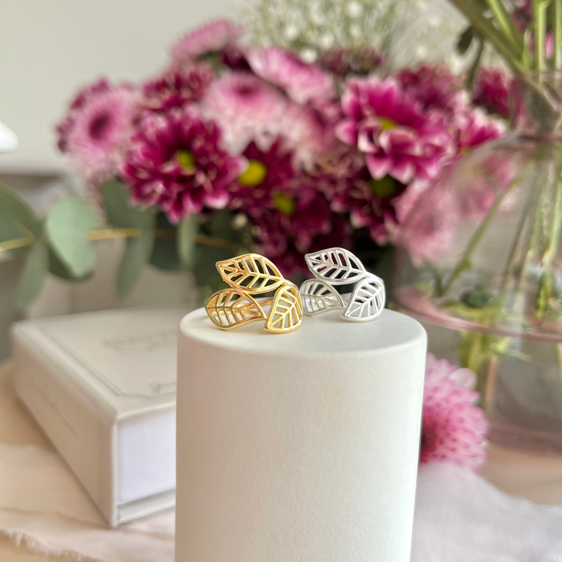 O Anel Flora traz o desenho vazado de folhas em um formato orgânico que abraça o dedo com leveza. Seu design botânico e elegante é um convite a se reconectar com o que é natural, simples e essencial. Uma peça cheia de personalidade, feita para florescer com você — todos os dias.
