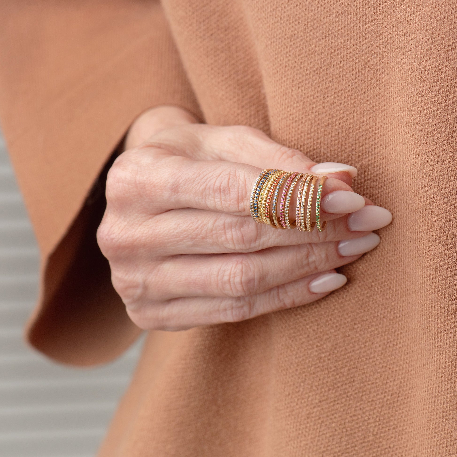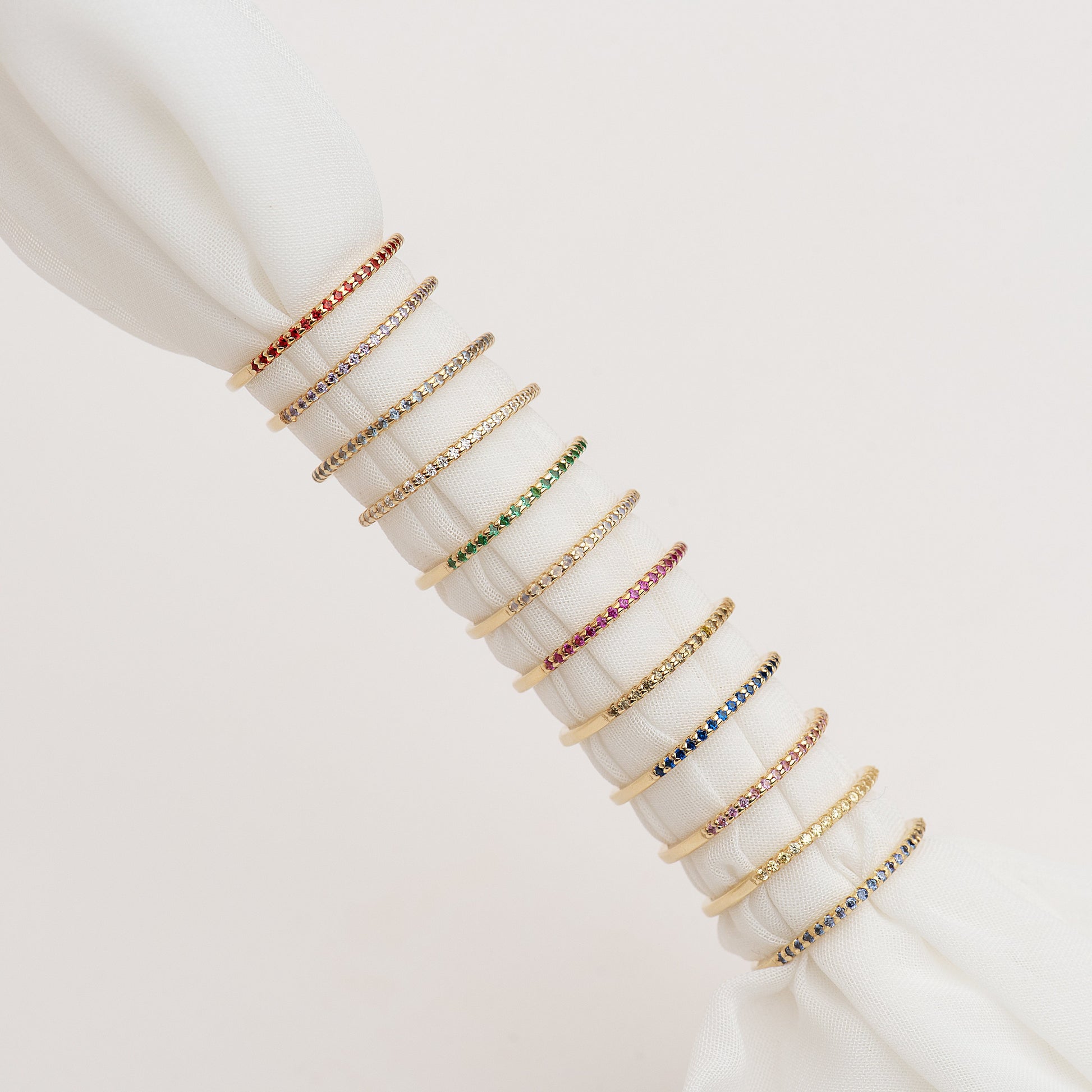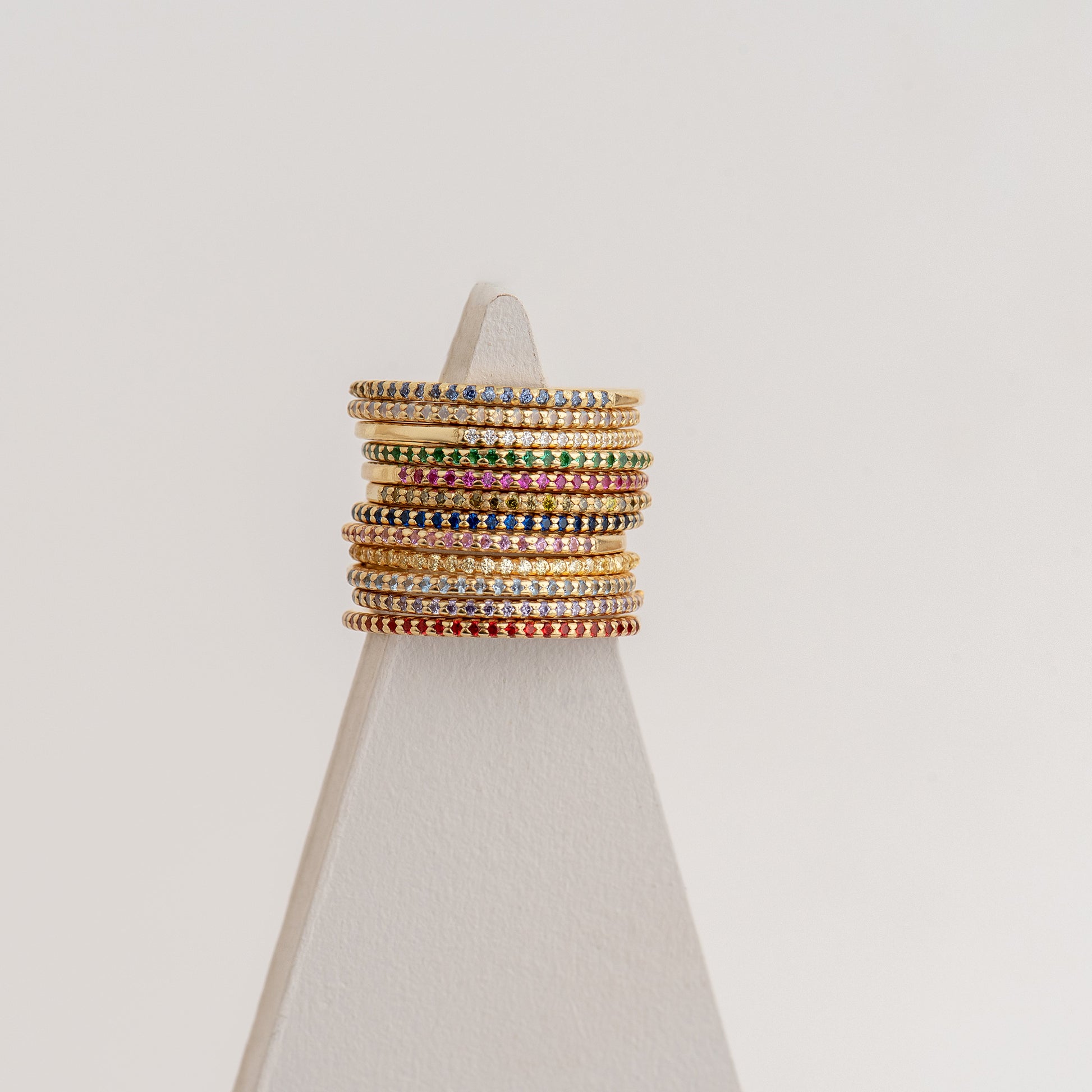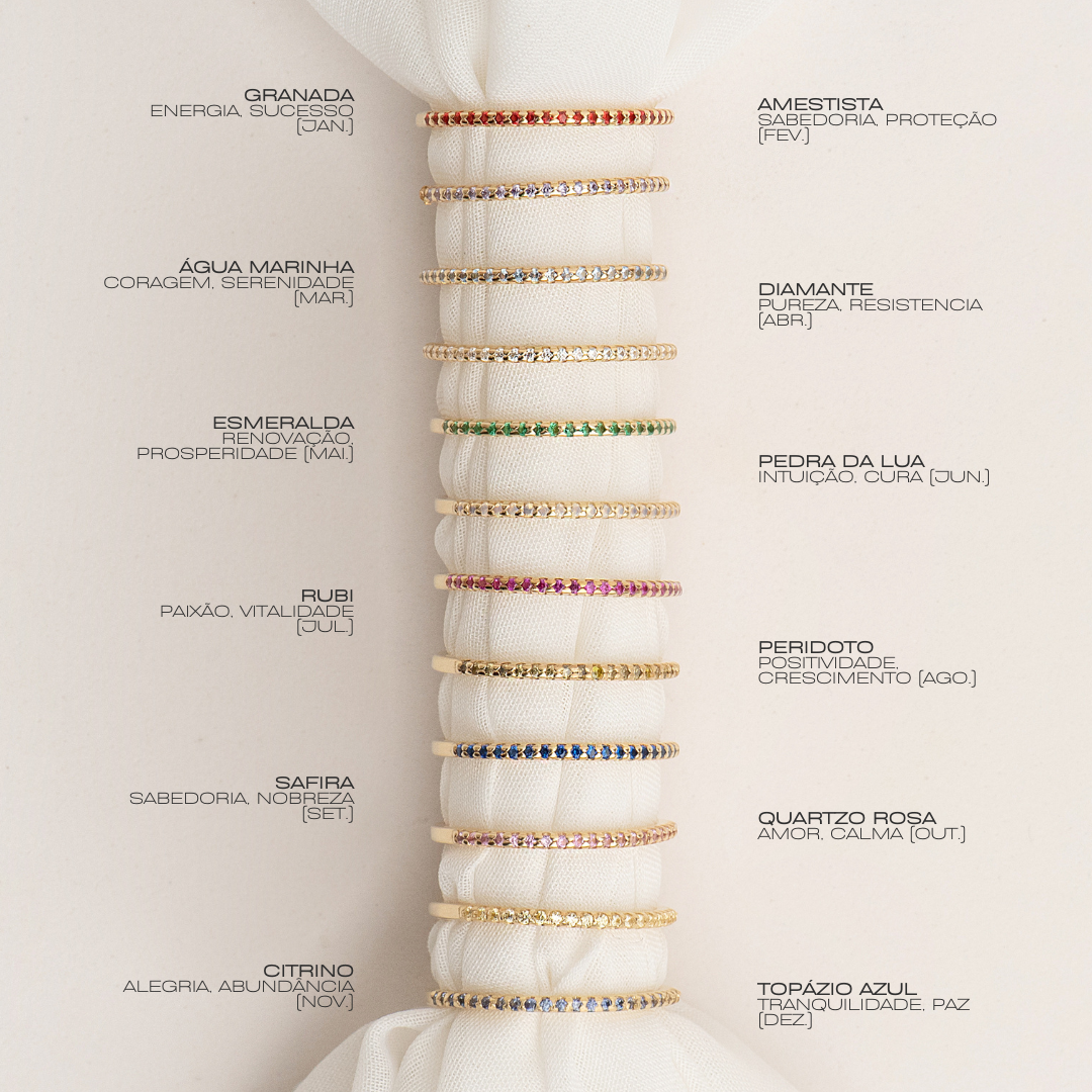 Cada pedra representa um mês. Cada mês, uma história. O anel Zamani é delicado, fininho e perfeito pra usar sozinho ou empilhar — criando uma combinação só sua. Dá pra escolher a cor do seu mês, da pessoa que você ama ou de um momento que marcou. Porque tem histórias que a gente quer carregar todas juntas.