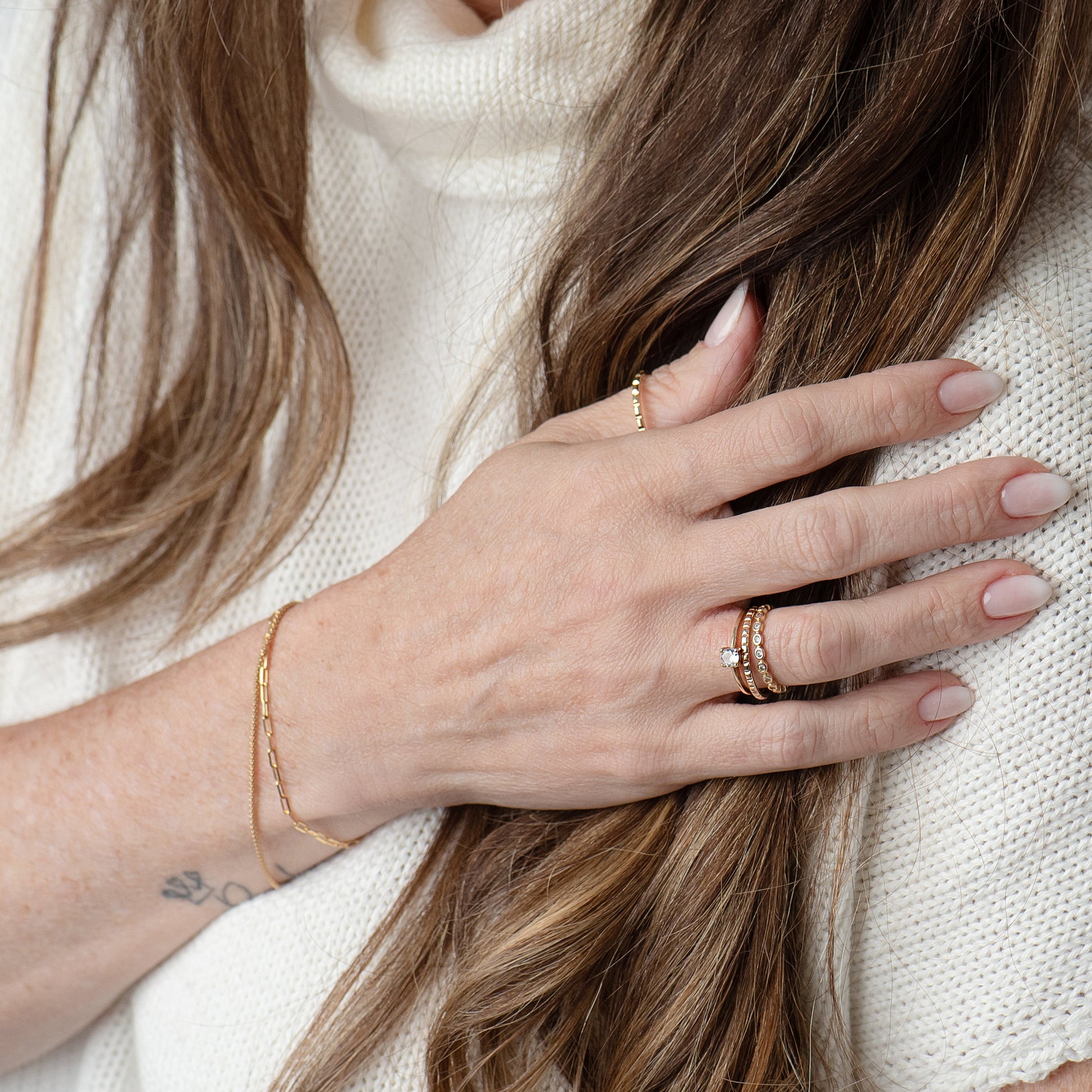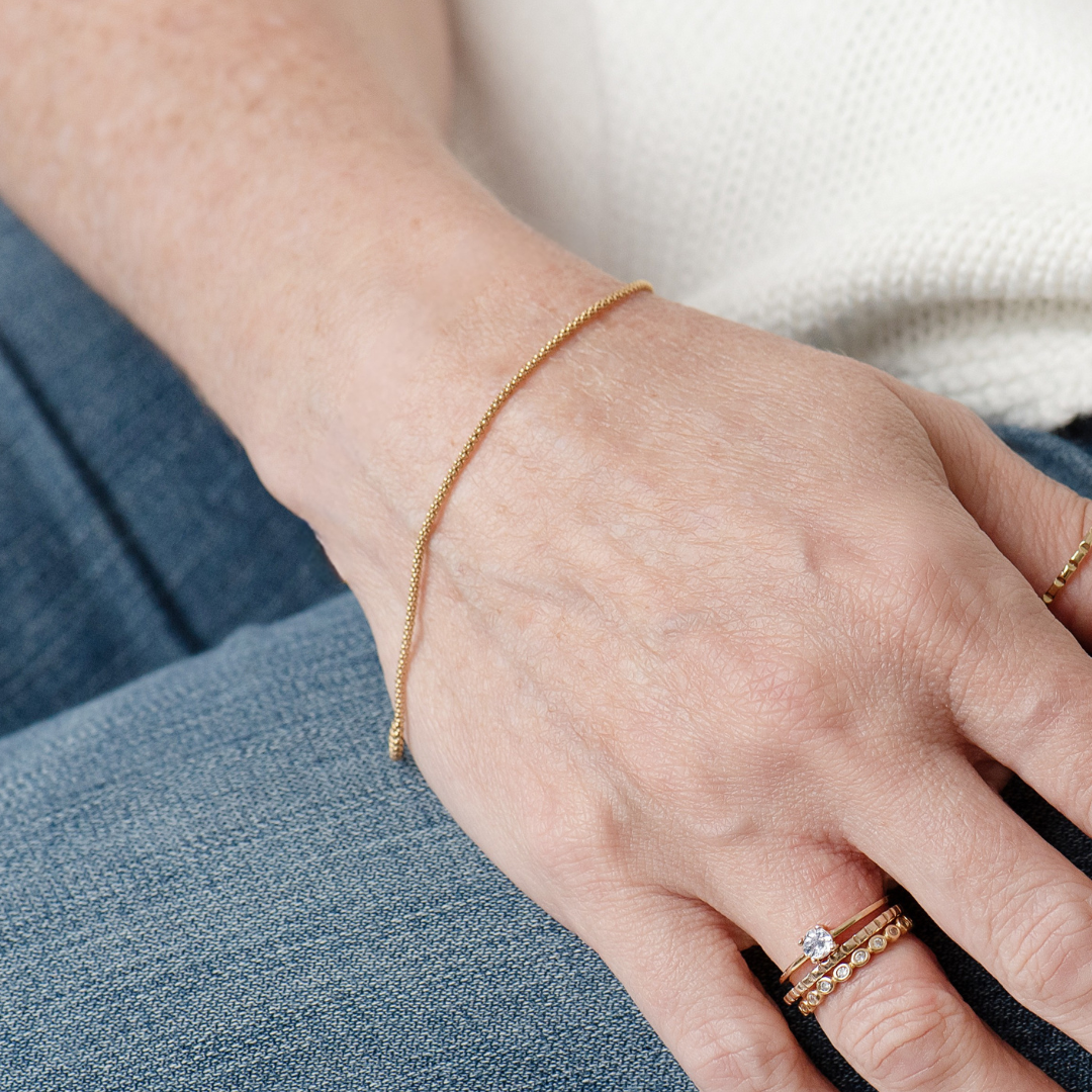 Delicada e versátil, a Pulseira Yika é perfeita para o uso diário. Leve e confortável, ela traz um brilho sutil que funciona sozinha ou em mix com outras pulseiras — um detalhe discreto que transforma qualquer composição.